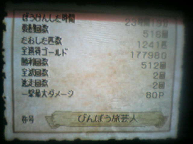 トンネル開通の60000Gがかなりきつかったです。 兵士長にはがねのつるぎ、てつのよろいを6つずつ頼まれましてね困りますよ。 エレフローパーときゅうけつこうもりの大量殺戮で稼いでいました。その他はえおとこの革の鎧とかを売りさばいて金にしました。これで鉄の鎧を2着調達できました。(少な! 他には外で出てくるひとくいそうのてつのよろいを売ってはがねのつるぎを2本調達。 6個ずつ調達すると兵士長から60000Gをもらえます。地味に集めてもいんですけどね トンネルも開通したときに思い出しました トーマス返してNEEEEEE!! まぁいいか(よくねぇ!! 最終戦歴は『やりくり武器屋』です。まぁ普通です。 明日からは4章『モンバーバラの姉妹』に移ります。 |